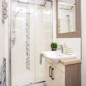 Our two bedroom Olive Caravans offer all the standard features of an Ivy Caravan, including a 3pm check in time. They also come with the added benefit of patio doors and a decking area so you can enjoy the surroundings.
