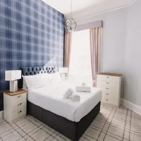 Located above the bar on the upper floor of Erigmore House, this modern and spacious 2-bedroom apartment comfortably sleeps five, with a master double bedroom and a second bedroom which includes both a double bed and a single bed, perfect for families.