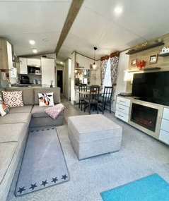 This bright and spacious extra large home at 40 foot long has beautiful French doors at the front, opening into the living area featuring a large L-shaped couch with an armrest and handy USB socket. Dine with the family at the free-standing dining table before getting a good night's rest in the comfortable bedrooms.