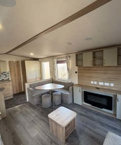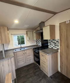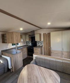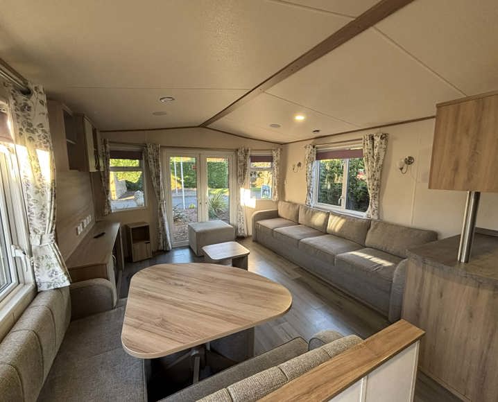 The Abi Oakley is a beautiful pre-loved holiday home offering a warm, welcoming space for relaxing getaways. It features comfortable fixed seating, a dedicated dining area, and a stylish U-shaped kitchen complete with a built-in fridge-freezer and microwave.