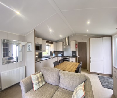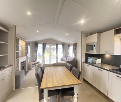 Scrumptious living with clever space saving solutions. Complete with UPVC decking and skirting.