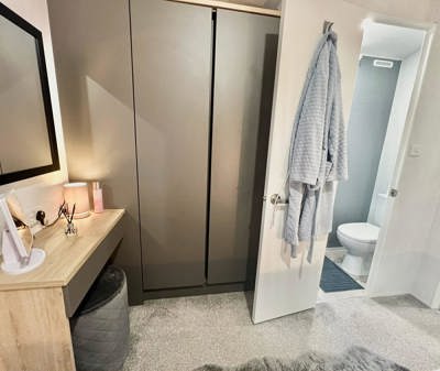 The 2024 Carnaby Ashdale is a modern static caravan ideal for families. It features a durable galvanized chassis, a front bay window, and a spacious living area with L-shaped seating and a TV cabinet. The master bedroom has a king-size bed, large wardrobe, and en-suite WC. Twin rooms are roomy with ample storage. The main bathroom has a shower, sink, and mirror. It also includes central heating, double glazing. The Ashdale offers a blend of comfort and practicality for year-round use.