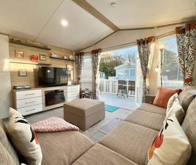 The Chorus is a bright, spacious holiday home with outlook doors which open into the living area. An open plan living dining area features an L-shaped sofa and modern fireplace, freestanding dining table and chairs, this model offers two very spacious bedrooms including an ensuite, and sleeps 6 when using the integrated living room sofa bed.