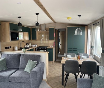 The Willerby Sierra 2025 is a stylish, modern static caravan designed for comfort and social living. With an open-plan lounge, bold green and oak interiors, and plenty of natural light, it feels both contemporary and cosy. It features a fully equipped kitchen, spacious dining area, and comfortable bedrooms including a master with en-suite. Energy-efficient heating, double glazing, and smart storage make it practical year-round and the patio doors add a touch of luxury.