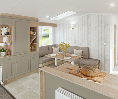 The brand-new Willerby Sierra offers a relaxed, modern feel throughout. The living area features stylish fixed seating along with a free-standing dining table and chairs, creating a comfortable and welcoming space to unwind.
